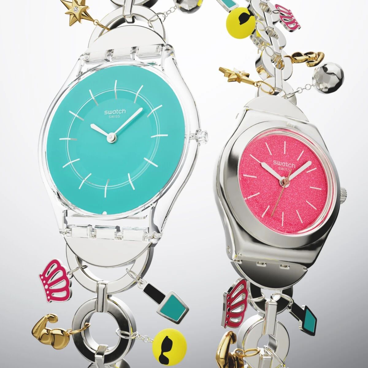THE CHARM OF MOM y MOTHER LIKE NO OTHER estarán a la venta en todo el mundo en Swatch.com el 26 de febrero de 2026.