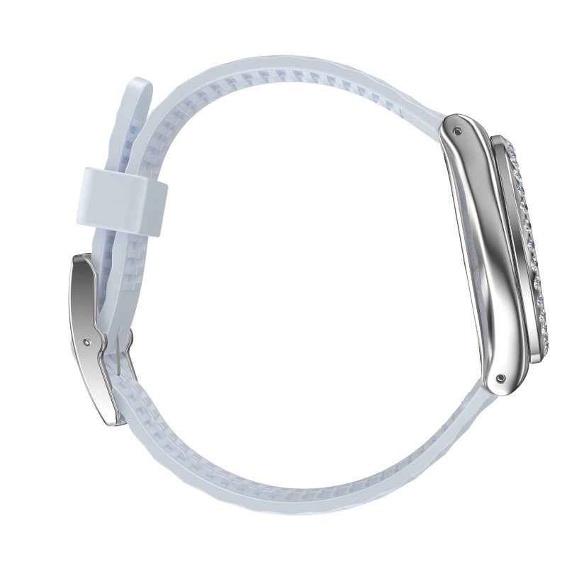 Mostrati come un miliardaria con questo modello attivo! Un bracciale sportivo a trama 3D blu incontra un quadrante placcato oro, mentre i cristalli blu cielo aggiungono brillantezza.